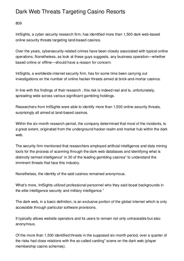 After all, who would want to visit a casino that is nefarious for its security breaches! The virtual world, for all its benefits, is also extremely susceptible to data hacking and malware attacks. One of the most significant disadvantages of online gambling is the data theft threats it poses to the clients. Join us for a one-hour webcast on cybersecurity threats facing the casino industry. Topics to be addressed include: Best practices for managing data breach risk; How a data breach can affect casino operations; How RSM is helping clients address cybersecurity. Venues in Las Vegas have been repeated targets of cyber attacks. MGM Grand is currently facing court action over a security breach during the summer that exposed the personal details of a reported. ON DEMAND: The insider threat—consisting of scores of different types of crimes and incidents—is a scourge even during the best of times. But the chaos, instability and desperation that characterize crises also catalyze both intentional and unwitting insider attacks. Threats on the web affect the industry Over the years, large companies have become the target of cyber attacks. Technological advances have shown that they are increasingly vulnerable and leave their information exposed and defenseless. Cybersecurity strives to protect the data stored in computer systems and thus prevent unauthorized entry.